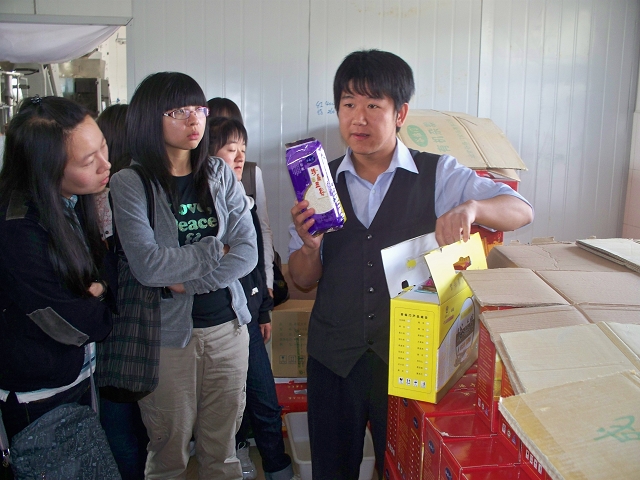 西胡林村党委书记王玉柱、太阳成集团tyc7111cc2005级毕业生村官吕文正、梁自山对大家的到来表示热烈的欢迎。座谈会上,王书记和村官吕文正详细介绍了西胡林村的人口面积、基础设施建设、文化建设和村民经济水平,以图文并茂的方式展示了西胡林村日新月异的发展和进步。植保教工党支部书记尚巧霞老师代表党支部为他们带去了种植及防虫害等相关书籍资料,并表示很乐意为他们解决关于病虫害等相关问题。会后,王书记带着全体师生参观当地招商引进的谷临门有限公司,了解了由2008年开始建设的小杂粮加工厂、2009年建成的甜玉米加工厂及食用油加工厂,这些项目的投入解决了一部分村民的就业问题,提高了村民的经济收入。