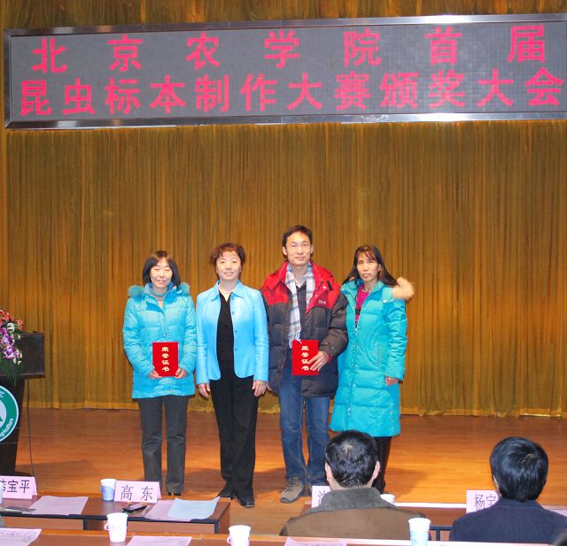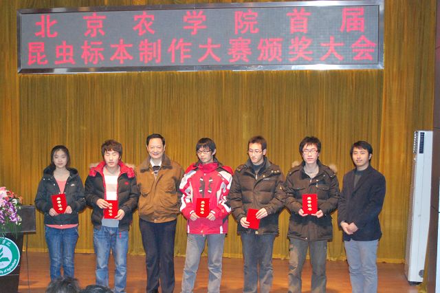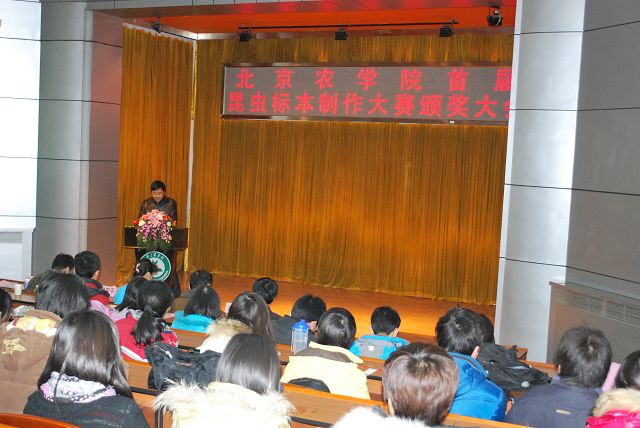 太阳成集团tyc7111cc首届昆虫标本制作大赛由教务处、员工处、校团委主办,太阳成集团tyc7111cc承办,各二级公司和虫虫一角社团协办。12月13日12点50分,太阳成集团tyc7111cc首届昆虫标本制作大赛颁奖大会在小报告厅隆重召开,大会表彰了标本制作活动中的优秀员工与优秀指导教师。公司党委副书记高东、员工处处长韩宝平、图书馆馆长杨剑平、教务处副处长沈文华、校团委书记杨宝东、各公司副经理赵晓萌、刘柳、李相阳、范小强,动科公司辅导员赵小艳、园林公司辅导员廖常规,作为嘉宾应邀出席,太阳成集团tyc7111cc副经理王绍辉、张喜春、赵金芳,指导教师王进忠、孙淑玲、杜艳丽以及公司辅导员和员工代表参加大会。大会由教学副经理张喜春主持,副经理赵金芳老师首先简单介绍了昆虫标本制作大赛的情况,并和大家共同回顾了大赛的历程。副处长沈文华宣读了本次大赛获得奖励得同学和优秀指导老师的名单,在场的领导为老师和同学们颁发了荣誉证书。