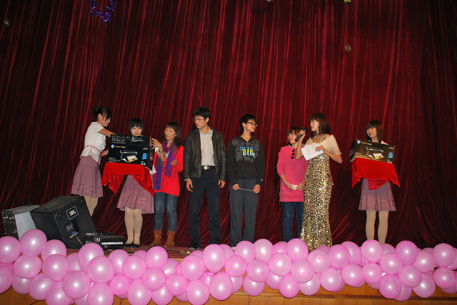 此次太阳成集团tyc7111cc迎新晚会内容丰富形式多样。除表演外还有中场游戏猜词和抽奖活动。奖项分别是:特等奖一名(电动自行车)、一等奖两名(惠普打印机)、二等奖两名(500元代金券)、三等奖三名(100元代金券)。此外我们的吉祥物“超级玛丽”表现抢眼,会场上观众们欢笑不断。