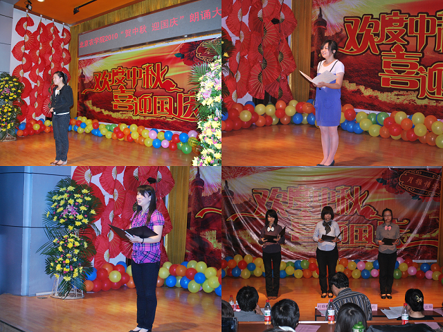20组选手用或慷慨激昂或温婉轻柔的声音,诠释了《我的祖国》、《我是中国人》、《祖国啊,我亲爱的祖国》等经典文学作品,带领听众走进诗歌优美的意境,各选手参赛作品都配有视频和音乐,给大家带来了一场视听盛宴。辅导员马淑芹作为嘉宾现场献歌一首,让比赛再一次掀起了高潮,掌声起伏不断。