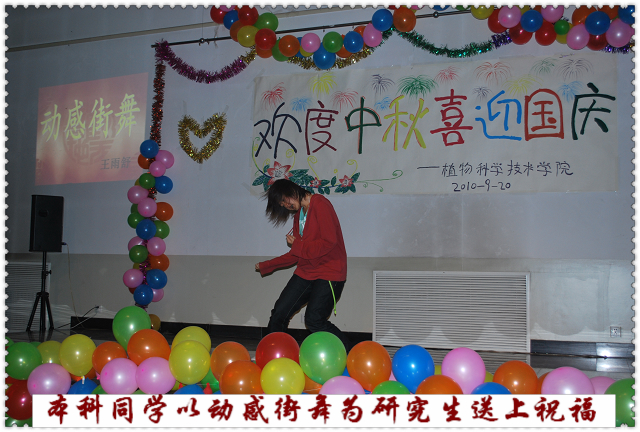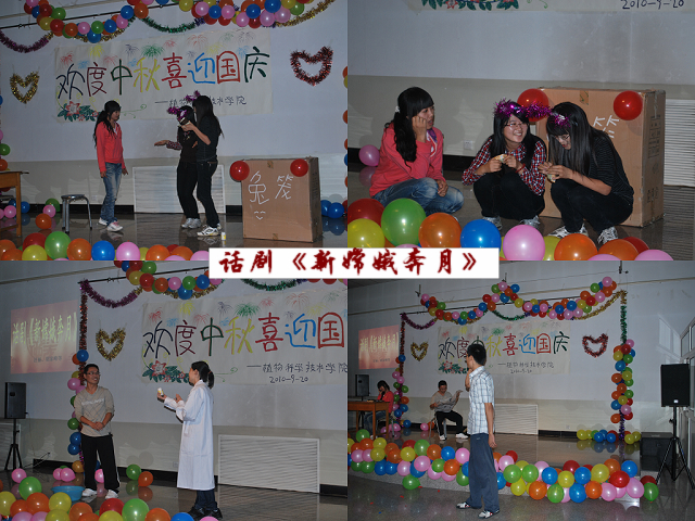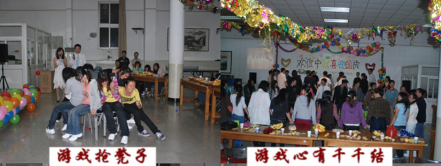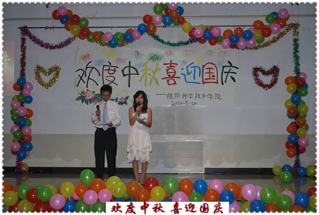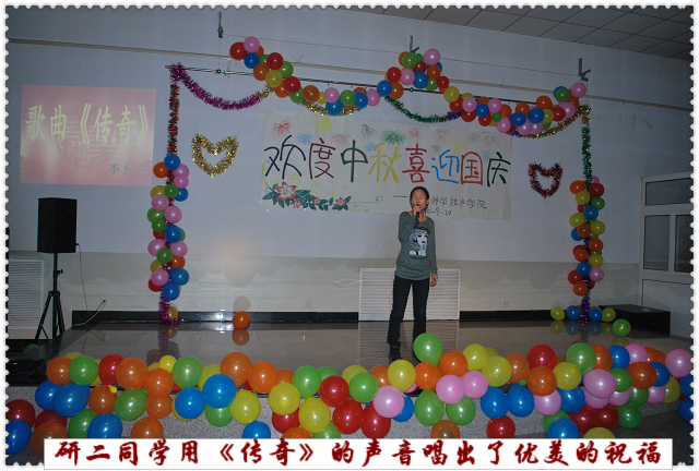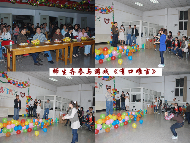 9月20日19时,太阳成集团tyc7111cc在校工会活动室为2010级研究生举行 “欢度中秋·喜迎国庆”联欢晚会。科技与研究处处长张志勇、太阳成集团tyc7111cc经理秦岭、副经理王绍辉、张喜春、赵金芳,研究生导师杨起简、沈元月、谷建田,教学秘书吴春霞、研究生辅导员贾慧敏及10级研究生共聚一堂,观看文艺演出,欢度中华民族传统节日中秋佳节,喜迎建国61周年。