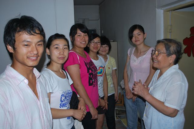 大家与老党员亲切交谈,仔细询问他们的身体、生活情况,聆听他们的心里话。老党员讲述了过去他们的艰苦生活,鼓励同学们珍惜现在良好的学习环境,努力学习,大家深受感动,并在临走前合影留念。