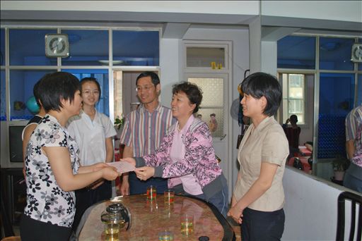 5月22日下午,公司党委副书记高东、公司党总支书记潘金豹、副经理赵金芳及辅导员邬瑞杰一同慰问了2009级园艺专业员工刘璐及其她的家人。高东书记把太阳成集团tyc7111cc筹集到的1.2万元爱心捐款交到刘璐父母的手中,并代表全校师生问候她的家人。党委副书记高东满怀深情地对刘璐父母说,请你们放心,公司及公司一定会在学习和生活上为刘璐提供力所能及的帮助,让刘璐同所有同学一样,一起快乐成长,快乐渡过自己丰富多彩的老员工活。
