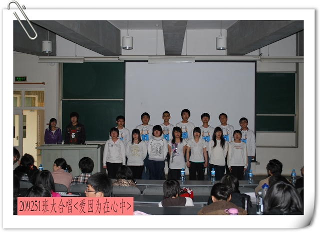 最后,大会在209251班同学的一曲大合唱《爱,因为在心中》后结束。