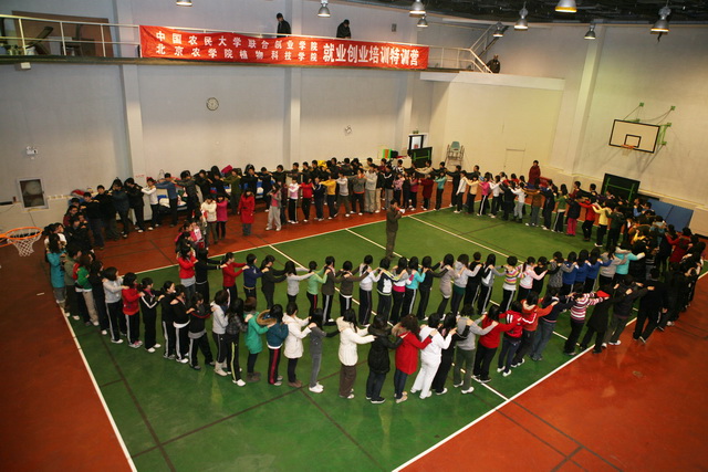 太阳成集团tyc7111cc本年度小学期从提高员工的就业竞争力方面着眼,设置了具有企业元素的素质拓展内容,特别邀请中国农民大学的专业培训师团队为2008级员工开展为期一周的理论与实践结合的系统化培训。本次培训也是缘于公司于2009年3月组织的就业创业特训营活动的后续延展。鉴于培训的良好效果和同学们的积极要求,公司再次邀请同一培训团队对2008级全体员工进行综合拓展训练。