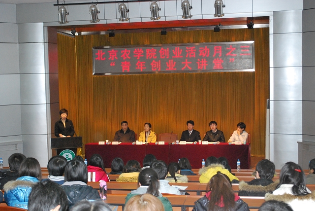 其次,创业青年代表杨栋通过讲述自己亲身的创业经历对创业的含义给予了现身说法式的阐述,杨栋是2005届本科毕业生,一次偶然的到老外家中帮助做电子照片设计促使了他产生创业的想法,并经过深入艰苦的市场调查和自身打工“偷工学艺”之后,创办了自己的有个性特点的以摄影图片冲印为主要业务的文化传播公司,他的在困境中毅然坚持的勇气和力量深深的打动了在场的同学和老师。