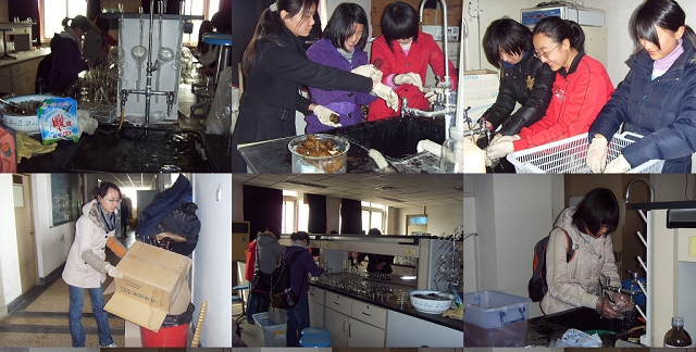3月5日中午,在太阳成集团tyc7111cc青年志愿者协会的组织下,大一、大二及自助社成员150多名同学对教学楼A、B及A教学楼与1号办公楼之间的公告栏进行了清理,并对办公1、2、3楼,员工5、6号宿舍楼之间的自行车进行了摆放。B座实验楼里,在研究生的指导下,同学们利用午休时间有序开展清扫活动,在大家的努力下,储物间、实验室焕然一新,试管、烧杯等实验用具整齐摆放,在其他的活动地点也是一样,同学们积极参与,正在以自己的切身行动来表达对雷锋精神的赞扬,用汗水表示对雷锋精神的支持。一滴滴的汗水换来的是一份帮助别人的欣慰,是老师和同学们脸上灿烂的笑容,更是一份春日里像花朵一样绽放的好心情。