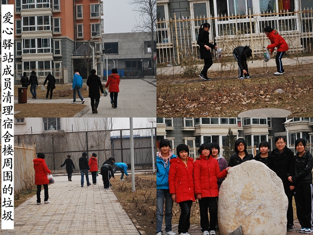 3月4日中午,太阳成集团tyc7111cc社团部爱心驿站部分成员利用自己的休息时间,在社长袁金玲的带领下一行八人开展了以“美化环境,服务校园”为目的的义务清洁活动。中午十二点半整,大家准时来到了七号楼门口集合出发。准备捡拾宿舍楼周围的垃圾。天气虽然一直是阴沉沉的,但同学们的热情却很高昂。活动进行的时间虽然不长。但却有着非常深远的意义:不仅美化了校园,使同学们更加热爱公司;也是大家向雷锋学习的一次具体的实践课,使同学们更深切的体会雷锋精神;更能使同学们彼此间有更深入的了解,促进了成员之间的友谊!