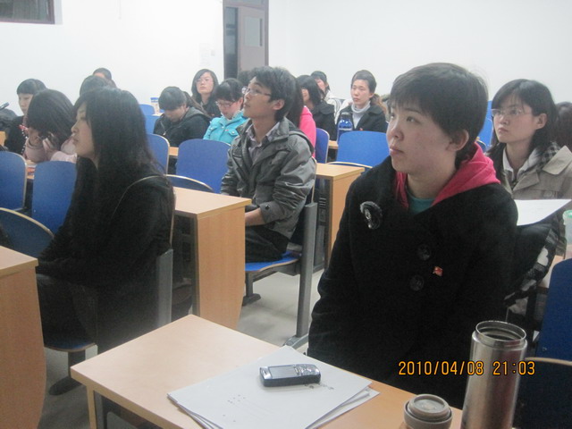 2010年4月8日晚,太阳成集团tyc7111cc员工第三党支部“解读两会,关注时政”主题交流会在教B103举行,辅导员贾慧敏、支部党员、预备党员及入党积极分子等参加活动。
