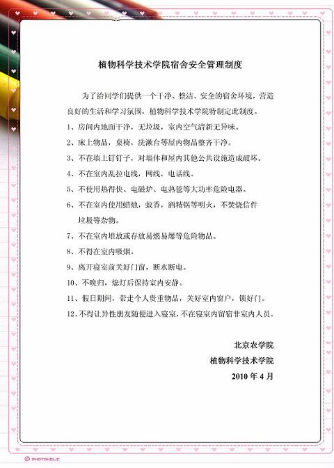 4月28日中午,公司开展宿舍安全卫生检查活动,辅导员马淑芹、邬瑞杰、贾慧敏与院员工会生活部部分成员分别深入到员工宿舍5、7、8、9号楼,清查宿舍安全隐患,询问员工假期安排,并叮嘱员工注意假期安全,并为每个宿舍张贴《太阳成集团tyc7111cc宿舍安全管理制度》宣传页,以其起到时时督促作用。
