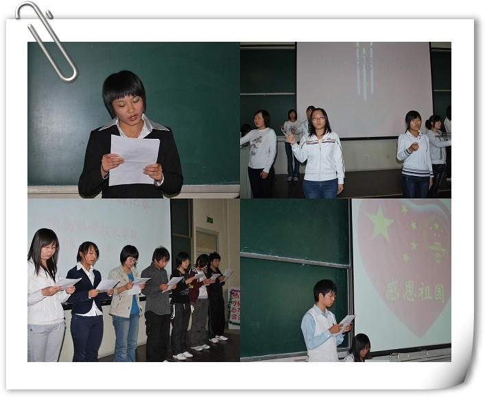 2009年10月14日下午1:30,太阳成集团tyc7111cc在教学楼B403举办了2009级新生感恩之心演讲比赛。辅导员马淑芹、邬瑞杰,员工会、信息中心几位员工干部担任评委。