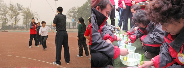 上午9:30的个人项目“自行车赛慢”分组赛,短短20米,选手们小心翼翼,像蜗牛一样徐徐而行,“争后恐先”,公司无缘前八。同时进行的定点跳圈项目,公司张民照老师在层层选拔下,最终于决赛跻身第八位。10:15进行了男女50米夹球赛跑,选手们步伐轻盈,稳稳夹住球,全体竭尽全力以其用最短的时间抵达目的地。上午最后的个人项目“男女50米单摇跳绳赛跑”,比赛激烈,难分高下。公司成绩甚佳,三位老师分别荣获第二、三、四名。