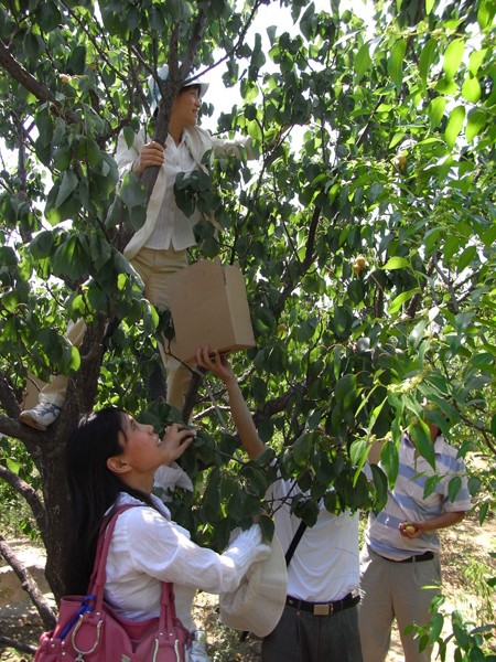 2009年6月5日,植物公司的老师们顶着烈日、冒着酷暑,穿越崎岖的山路,进入张旭家的杏园。看到因采摘不及时而落杏满地的情景,真感到可惜,早一点儿来帮助她就好了。阳光透过绿叶照在老师们粉红的笑脸上,形成了一道道亮丽的风景。看着装满鲜杏的盒子,在感受着收获的喜悦同时,心里感到一片慰藉。临走时,我们给张旭母亲送上了慰问金和补品。最后还帮助联系了买家,使全部甜杏都得以销售,解决了张旭同学的后顾之忧。这是一次有意义的活动,老师们感触颇深。生命因为付出了爱而更加富足,生命之歌因为有爱的音符而更加动听,让我们用爱心谱写的歌曲永远在生命中唱响、在晴空中回荡。