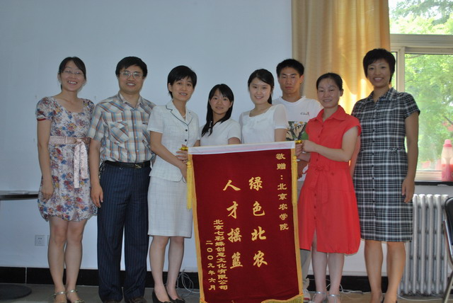 “绿色北农,人才摇篮”——这是北京七彩蝶创意文化有限公司赠送公司锦旗上面书写的文字。日前,北京七彩蝶创意文化有限公司副总经理胡群携3名即将毕业的植物科技公司员工来公司交流座谈。太阳成集团tyc7111cc副经理张喜春、赵金芳,辅导员马淑芹、贾慧敏接待了胡群一行。胡群此行是代表公司专门向公司赠送锦旗而来,以此感谢公司在其公司急需人才之际,培养并输送优秀员工赴公司工作。