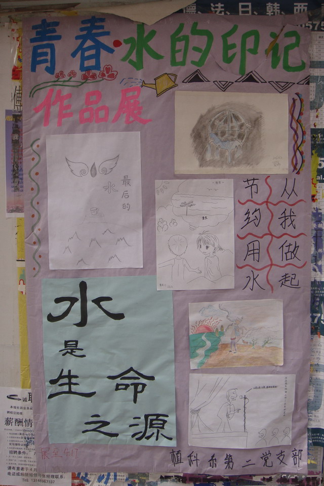 3月22日是第十七届“世界水日”,第二十二届“中国水周”的宣传活动也在这一天拉开帷幕。在这万物复苏的时节,为推动对水资源进行综合性统筹规划和管理,加强水资源保护,解决日益严峻的缺水问题,太阳成集团tyc7111cc员工第二党支部全体成员开展了一次面向全校员工征集以“青春·水的印记”为主题的漫画和书法。借此呼吁全校师生增强节水意识。在活动期间,同学积极参加,纷纷上交自己作品,党支部也对较优秀作品做了展览。