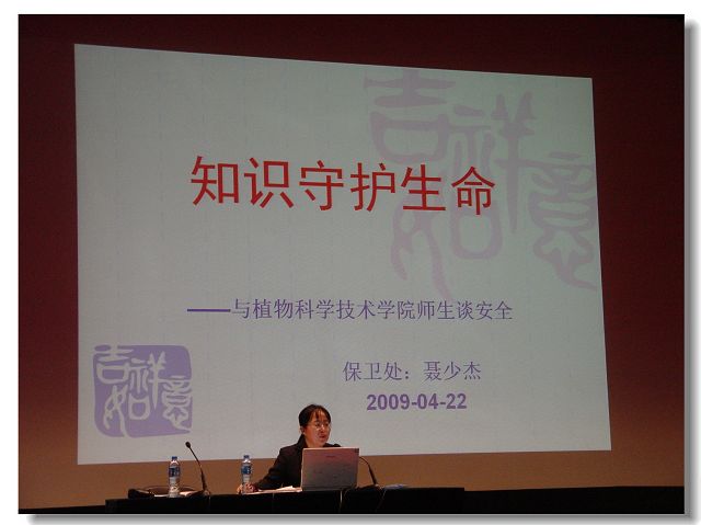 2009年4月22日下午1:30,针对老员工安全防范意识薄弱等问题,太阳成集团tyc7111cc特别邀请校保卫处聂少杰老师为院全体员工在礼堂举办安全教育讲座。辅导员马淑琴组织并主持了大会。