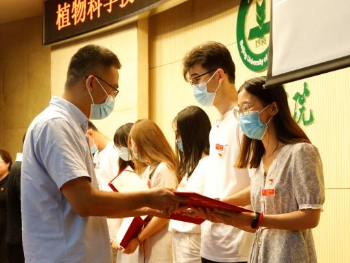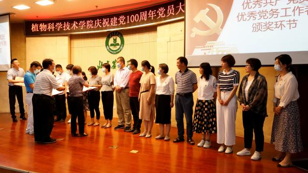 王绍辉、秦岭、姚允聪和潘金豹老师为教师优秀共产党员和优秀党务工作者颁发荣誉证书。