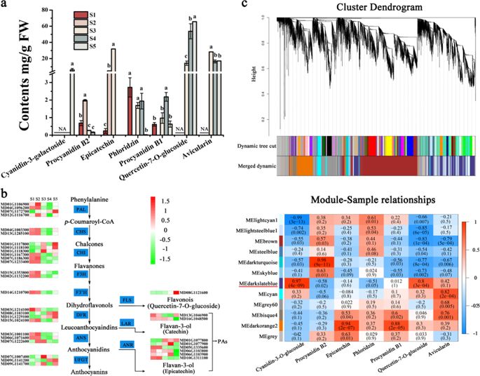 2020年2月1日,Horticulture Research在线发表了太阳成集团tyc7111cc姚允聪教授/田佶教授团队题为MdMYB8 is associated with flavonol biosynthesis via the activation of the MdFLS promoter in the fruits of Malus crabapple 的研究论文。该研究对五个不同发育时期的观赏海棠品种‘火焰’果皮进行转录组测序,利用KEGG pathway分析发现在果实发育过程中植物激素参与调节黄酮醇的生物过程。通过WGCNA和酵母单杂交试验筛选发现MdMYB8可能参与调控黄酮醇生物合成,并进一步通过在苹果愈伤组织中过表达和干扰MdMYB8基因,进行了功能验证。最终发现MdMYB8通过调控MdFLS 基因的表达,调控黄酮醇生物合成。